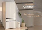 Коллекцию шкафов CORBETT составляют четыре различных модели в двух комбинациях декоров — артисан дуб и черная матовая фольга, а также кашемир и черная матовая фольга. Все четыре модели шкафов CORBETT отличаются разным распределением полезного пространства, которое включает элементы с вешалками, полками, а также часть с ящиками. Все модели оснащены зеркалом, которое имеет не только практическую, но и эстетическую ценность.