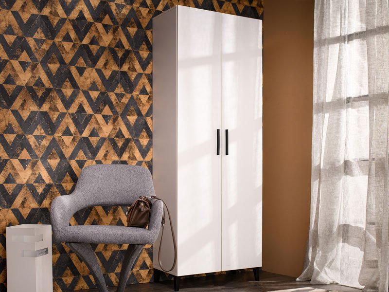Шкафчик для обуви BUSETO 2K с декорацией опак белого цвета является очень функциональным решением, а с закрытыми полками для хранения обуви открывается возможность для функциональной организации пространства прихожей.