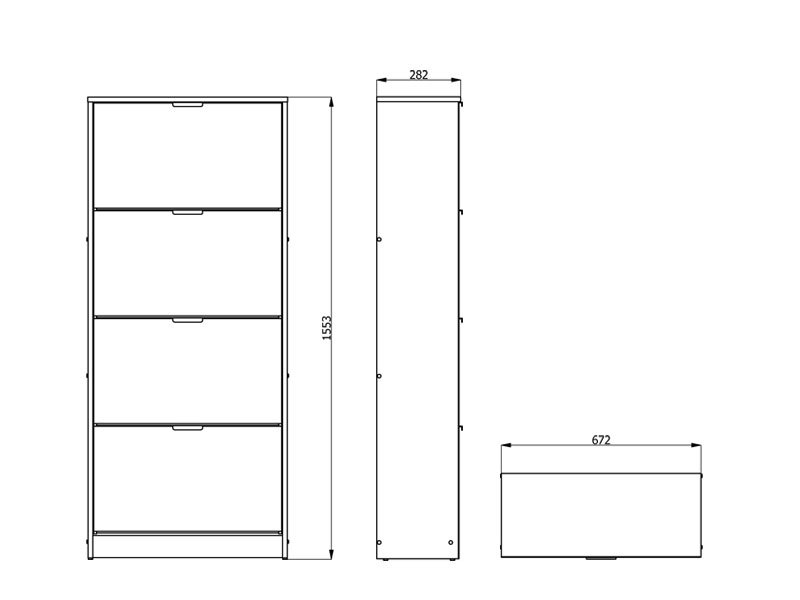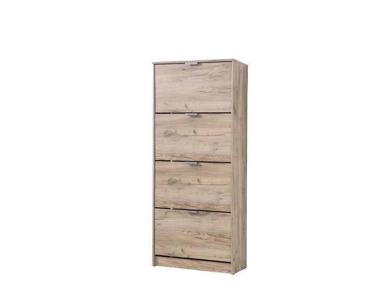 Шкаф для обуви HUGO 24 в декоре под цвет серого дуба имеет три сегмента для укладывания сезонной обуви, а благодаря своим размерам и двухуровневой планировке представляет собой очень эффективное и функциональное решение дизайна прихожей более скромных размеров.