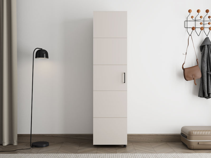 Pantofarul ISLAY 46 1K h185, cu decor de cașmir și dungi imprimate la cald, este o soluție practică și elegantă pentru hol. Interiorul acestui pantofar cu o singură aripă și rafturi închise permite o organizare clară și funcțională a încălțămintei.