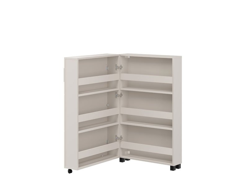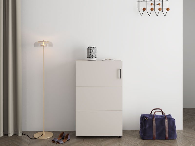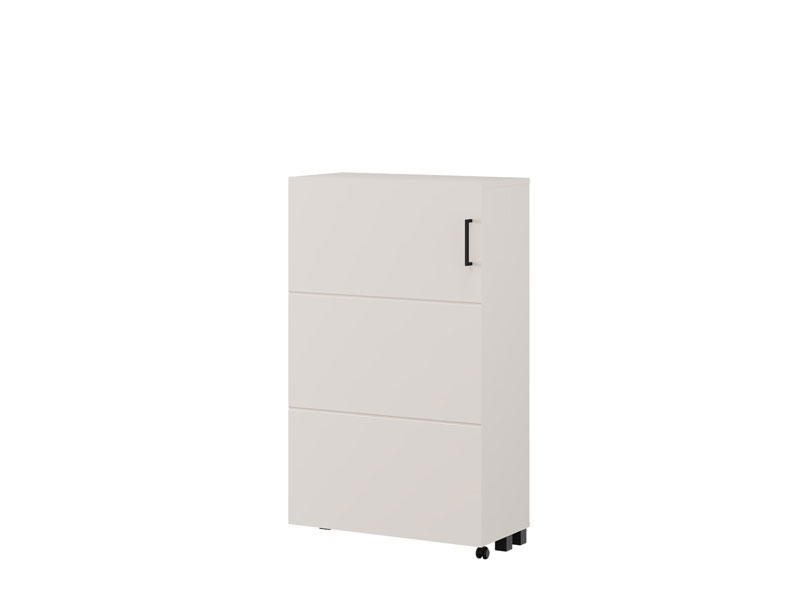 Шкафчик для обуви ISLAY 91 2K h113 в декоре кашемира с полосами горячего тиснения представляет собой практичное и элегантное решение для прихожей. Внутреннее пространство этого одностворчатого шкафчика для обуви, выполненное по типу комода с закрытыми полками, обеспечивает наглядную и функциональную организацию обуви.