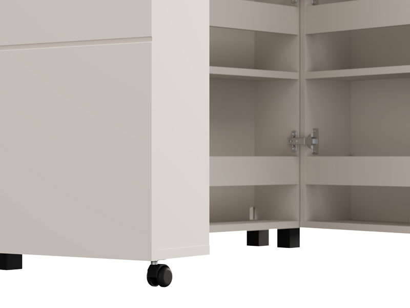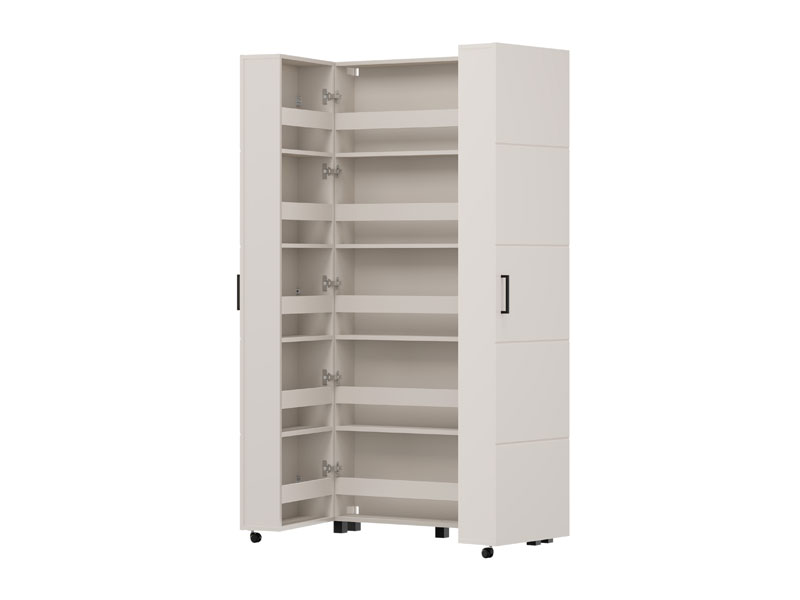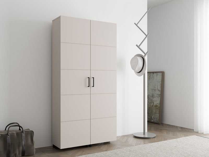 Шкафчик для обуви ISLAY 91 2K h185 в декоре кашемира с полосами горячего тиснения на двери представляет собой практичное и элегантное решение для прихожей. Внутреннее пространство этого двустворчатого шкафчика для обуви с закрытыми полками обеспечивает функциональную и наглядную организацию обуви.