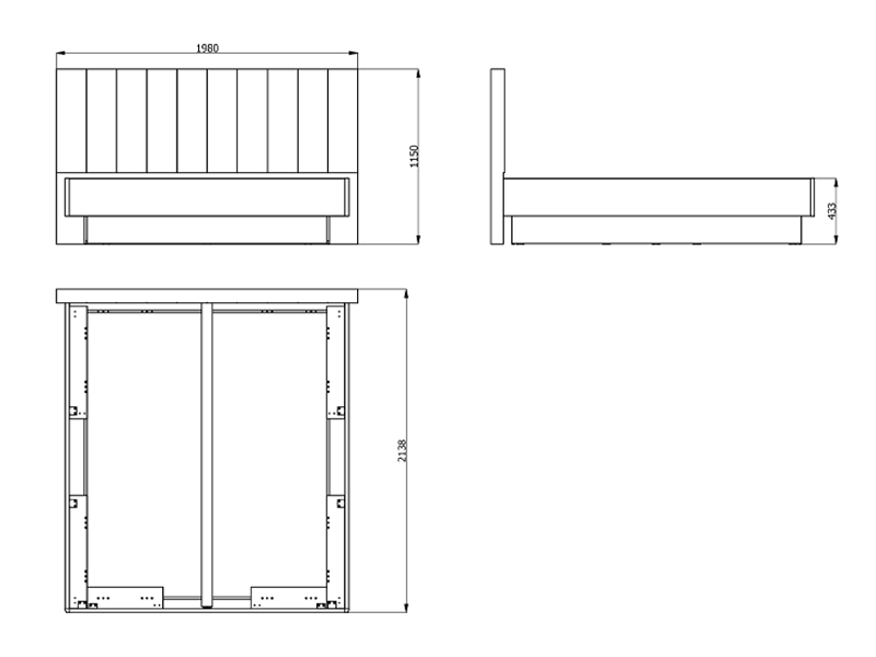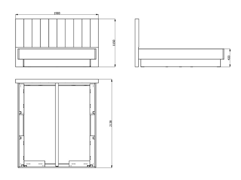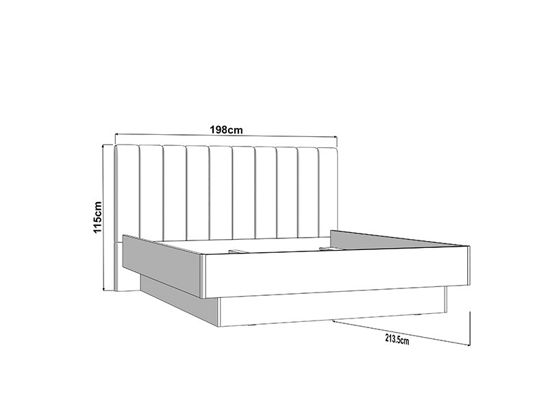 Кровать поставляется без основания и матраса и предназначена для матраса размером 180 × 200 см, что позволяет индивидуально организовать пространство и выбрать подходящие постельные принадлежности.