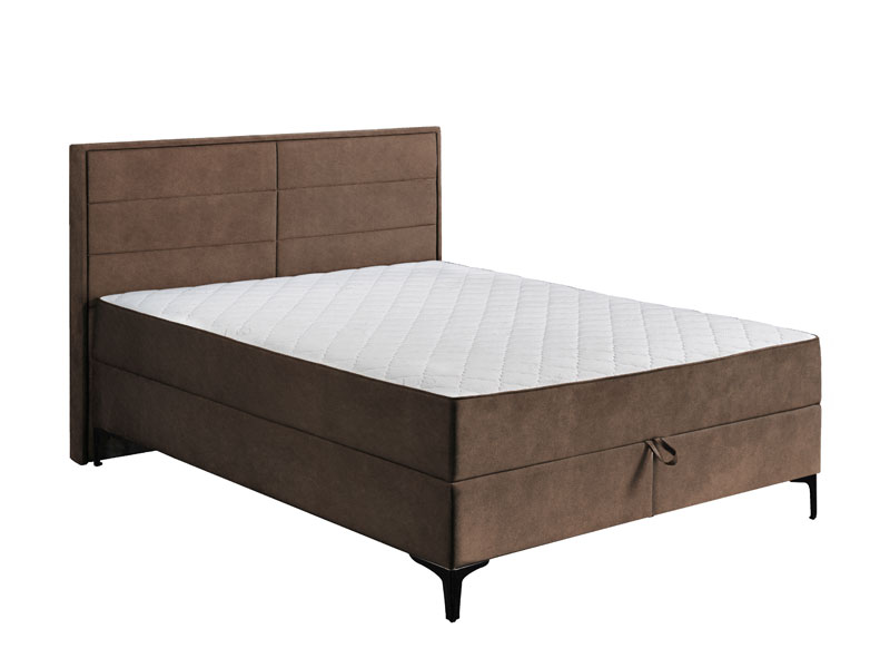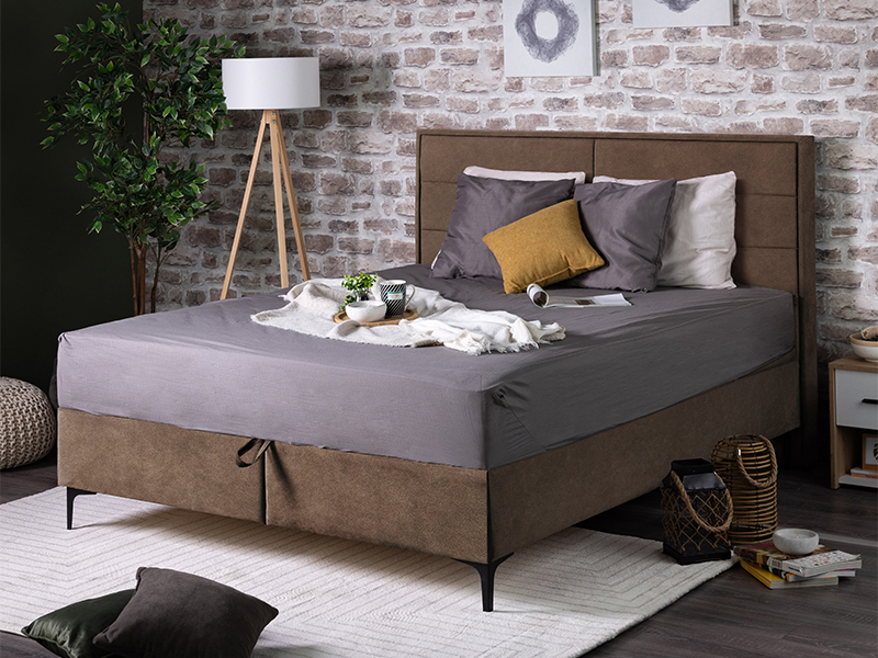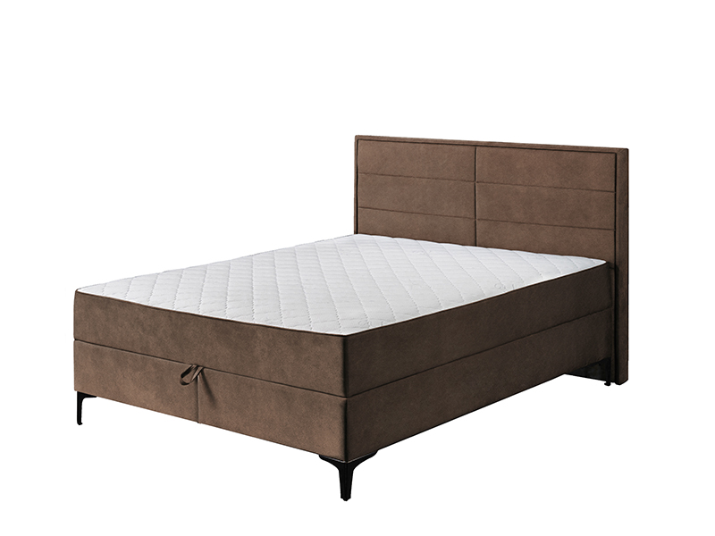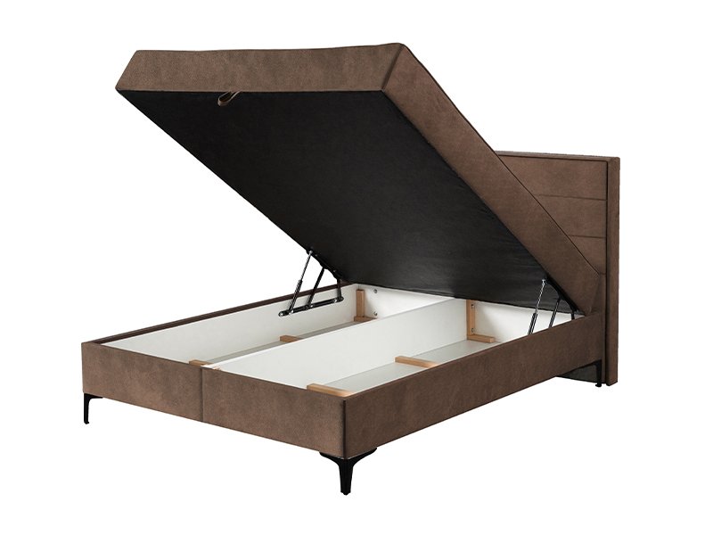 Модель двуспальной кровати DUE FRAME с обивкой коричневого цвета PRESTON 22 дополнена мягким каркасом и изголовьем, состоящим из двух частей, эстетика которого усилена строчками, придающими ему привлекательность. Двуспальная кровать DUE FRAME способствует созданию современной обстановки спальни и отлично сочетается с различной мебелью, составляющей эту обстановку. Эта модель двуспальной кровати имеет матрас с пружинным блоком, который поднимается благодаря механизму "Ножницы" с газовыми амортизаторами и открывает пространство двух вместительных ящиков для постельных принадлежностей.