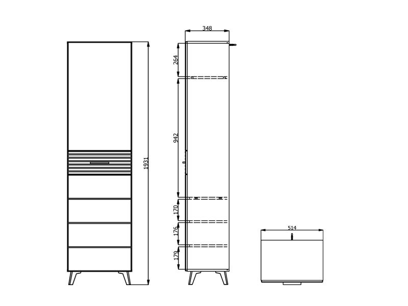 Элемент прихожей SEIN P1 в сочетании белого декора, белой лаковой пленки и пленки ремесленного дуба обеспечивает практичное полезное пространство, состоящее из трех полок для хранения обуви и полки, расположенной над регулируемой гардеробной штангой.