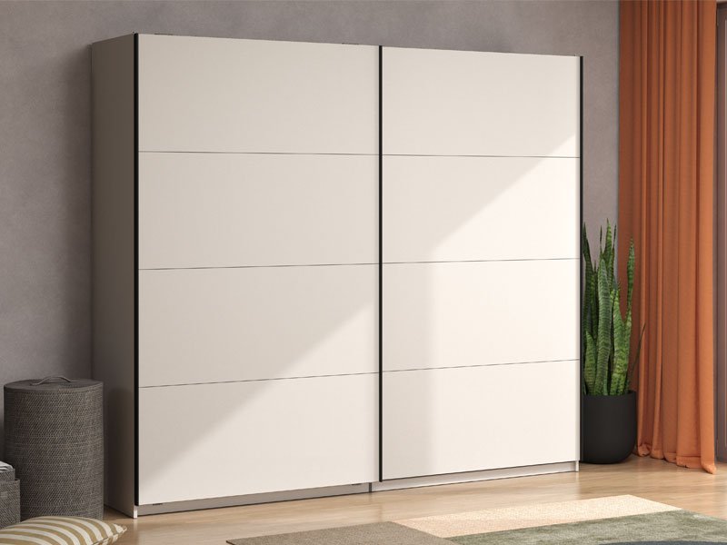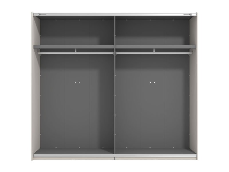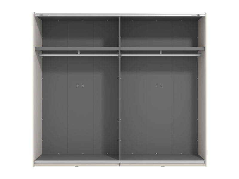 Модель шкафа GARD 245 h217 с раздвижными дверями, в кашемировом декоре, способствует функциональности интерьера, эстетике и максимальному использованию пространства. Рабочее пространство этого шкафа включает вешалки и по одной практичной полке с левой и правой стороны. Также имеется возможность добавления комплекта полок, соответствующих этому шкафу, или других функциональных надстроек, а также установка демпферов для раздвижных дверей.