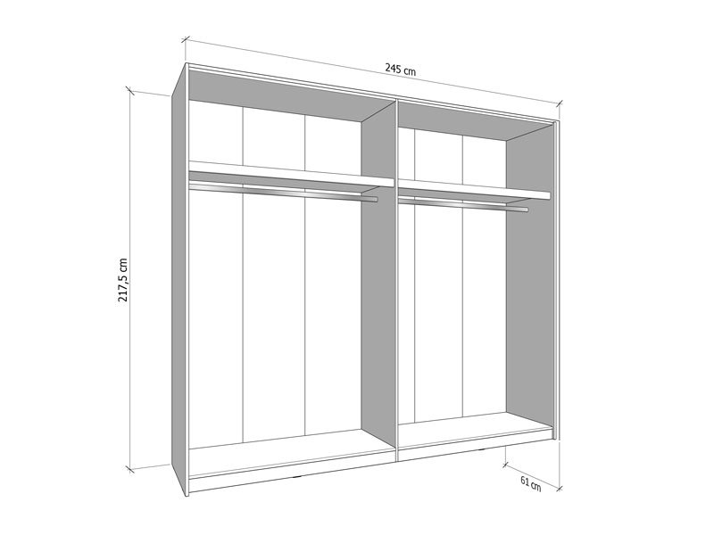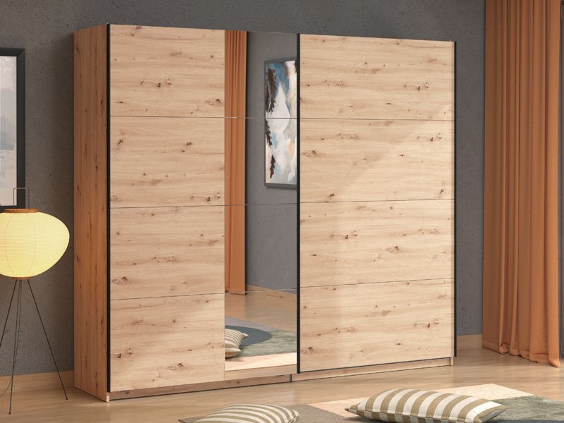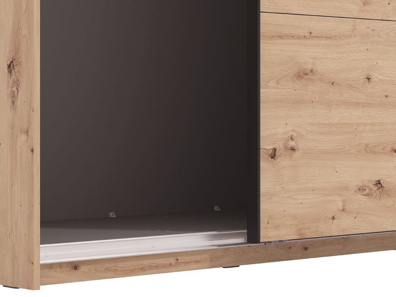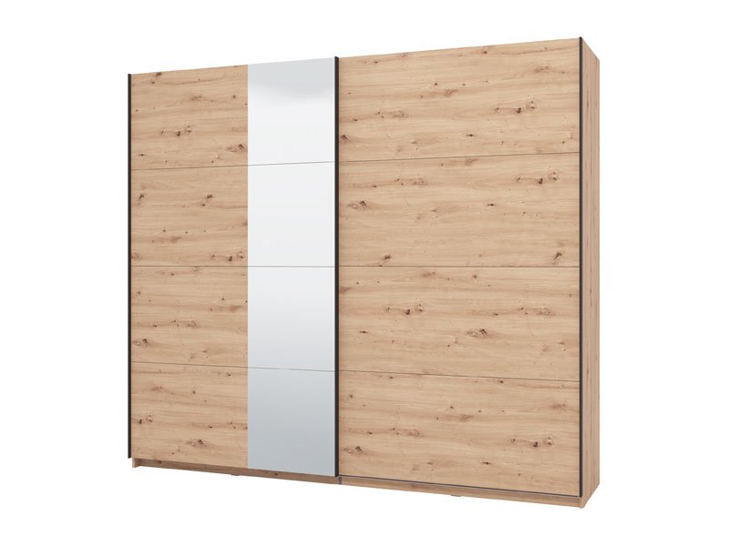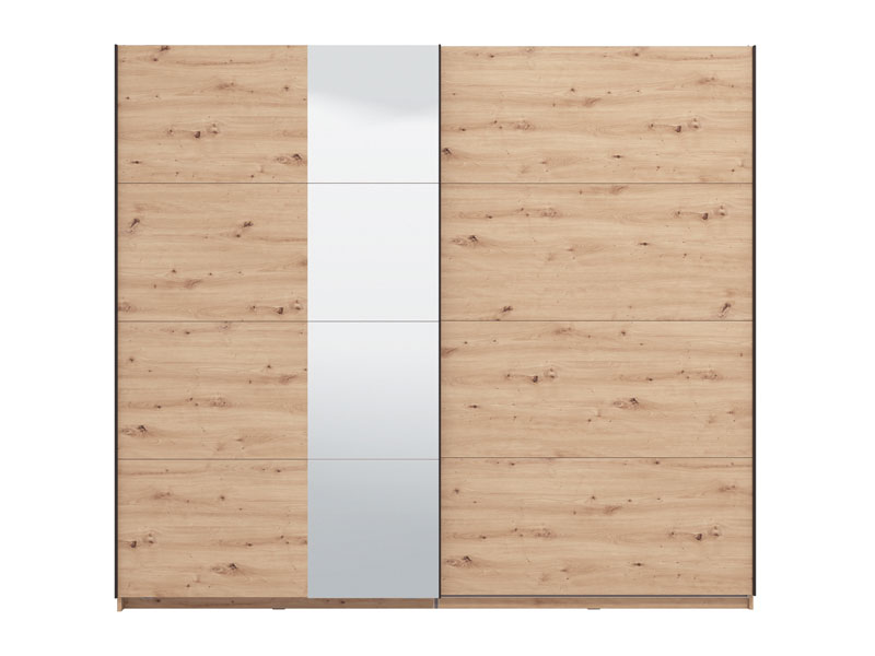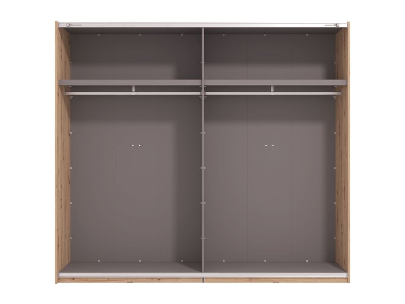 Модель шкафа GARD 245 OG h217 с раздвижными дверями, в декоре артезанского дуба и сегментом с зеркалом на левом фронте, способствует функциональности интерьера, эстетике и максимальному использованию пространства. Рабочее пространство этого шкафа включает вешалки и по одной практичной полке с левой и правой стороны. Также имеется возможность добавления комплекта полок, соответствующих этому шкафу, или других функциональных надстроек, а также установка демпферов для раздвижных дверей.