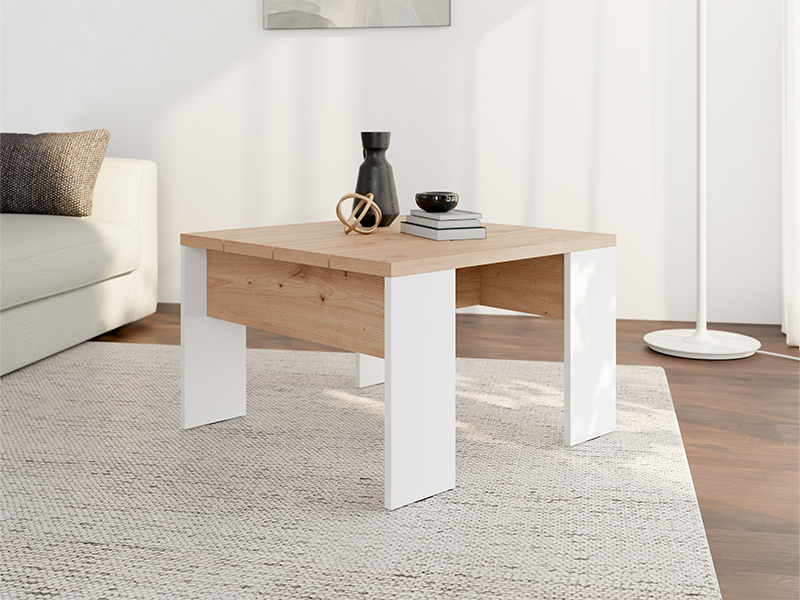 Журнальный стол MONTESE 67×67, благодаря практичным размерам и чётким линиям является идеальным выбором для современных и минималистично оформленных интерьеров. Нейтральный белый декор в сочетании с теплотой древесного декора легко сочетается с различными стилями мебели, а простой дизайн придаёт пространству аккуратный и современный вид.