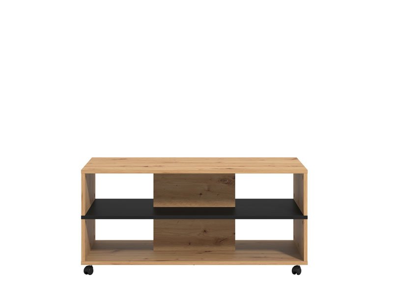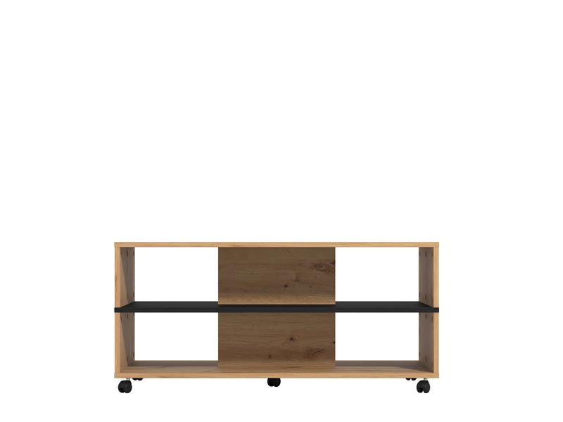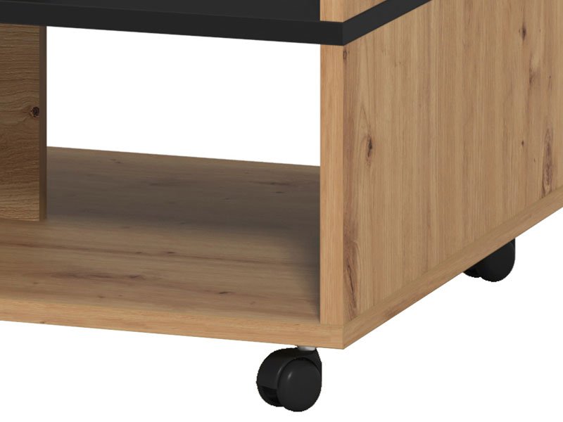 Журнальный стол SAVIO в сочетании черного декора и ремесленного дуба имеет практические и эстетические преимущества. Доминирующей деталью в облике этого журнального стола является эффектная полка контрастного декора под столешницей, подходящая для хранения любимых книг или журналов. Журнальный стол SAVIO вносит свой вклад в современную тематическую концепцию оформления гостиной.
