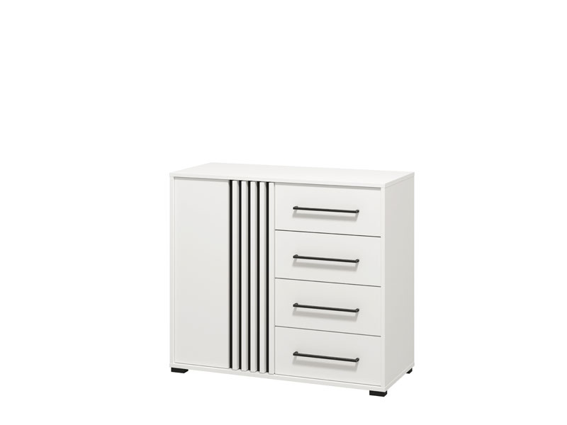 Комод ASCALON 2K4F 90 в сочетании чисто белого декора, черного декора и белой матовой пленки представляет собой аутентичный предмет мебели современного дизайна, который привнесет в обстановку спальни эстетику и функциональность.