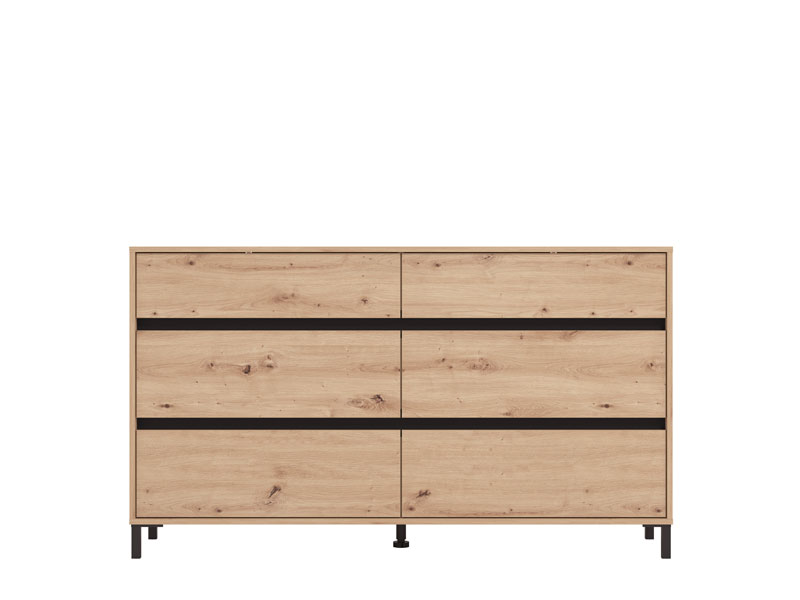 Комод MARRON 157 6F в комбинации декора артисан дуба и черной матовой фольги спроектирован так, чтобы благодаря используемому пространству, обеспечиваемому шестью просторными ящиками, он является элементом с высокой функциональной ценностью. Комод MARRON 157 6F идеально подходит для обустройства прихожей, гостиной, спальни, а также столовой.