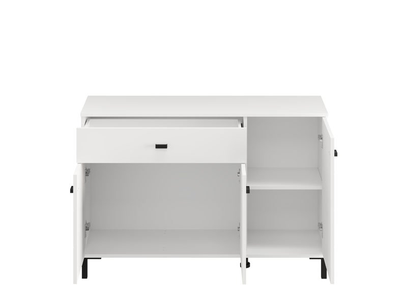 Шкаф SALAMIS 3K1O h207, выполненный в элегантном матовом белом декоре, придаёт спальне спокойный и современный облик, а зеркало на средней двери дополнительно повышает функциональность и усиливает визуальное восприятие пространства.