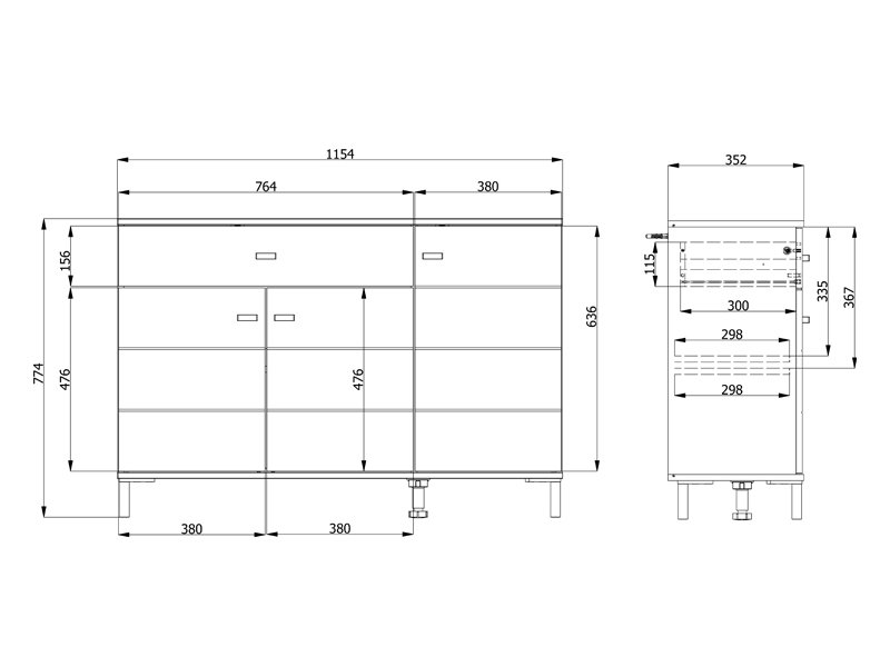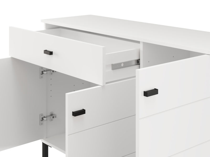Полезное пространство трёхстворчатого шкафа организовано следующим образом - двустворчатый модуль оснащён штангой для одежды, а одностворчатый модуль оборудован полками, что обеспечивает наглядное и удобное хранение гардероба и аксессуаров.