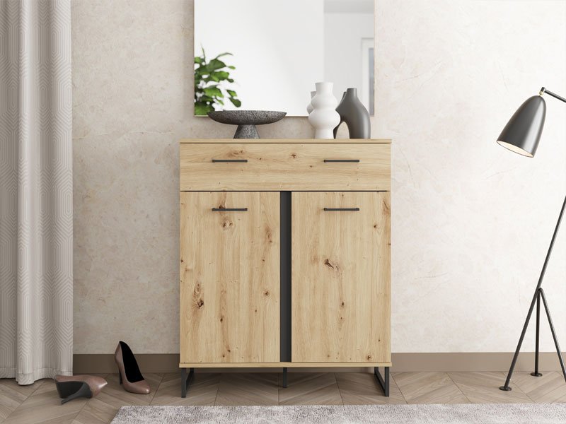 Комод SARDINIA 2K1F - это сочетание теплоты натурального и рустикального ремесленного дуба с добавлением тонких черных декоративных элементов, характерных для индустриального стиля в дизайне интерьера. Он состоит из двух закрытых сегментов с одной полкой-перегородкой и удобного выдвижного ящика. Является частью одноименной коллекции SARDINIA, с которой образует целостный интерьер, придающий вашему дому выражение аутентичного и смелого стиля жизни.