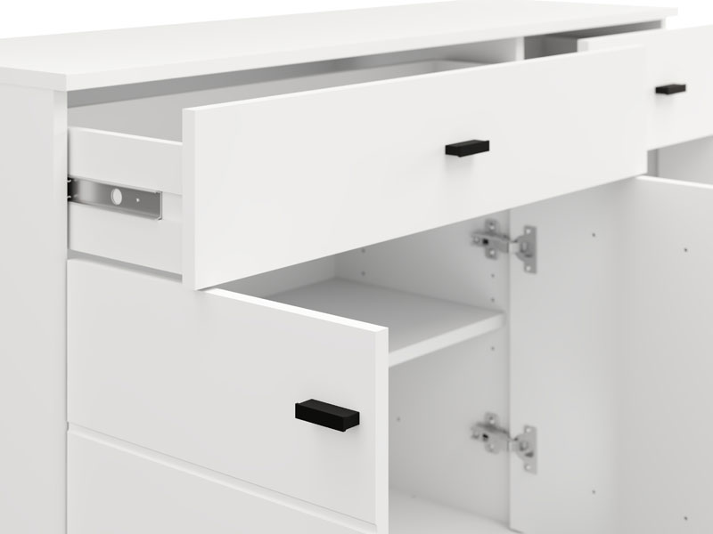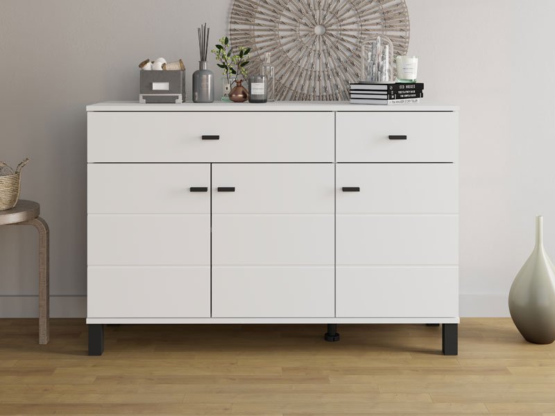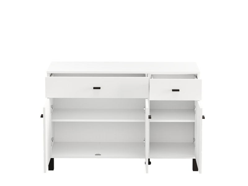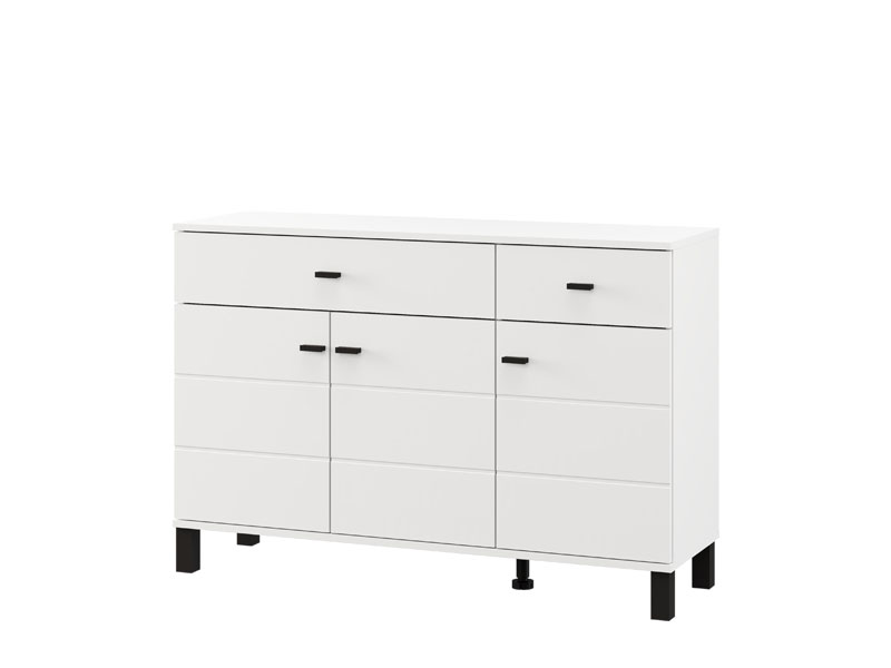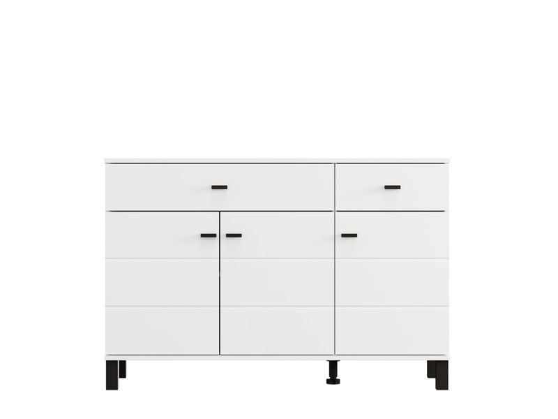 Комод ALMOND 115 3K2F3V, выполненный в матовом белом декоре, отличается сдержанным дизайном и практичным расположением элементов. Полезное пространство включает три закрытые секции с перегородками, а также две выдвижные ящика, расположенные под верхней поверхностью — один вместительный, предназначенный для хранения более крупных предметов, и один меньший для мелочей. Благодаря функциональности и нейтральной эстетике, ALMOND 115 3K2F3V является удачным выбором для обустройства гостиной зоны, спальни или прихожей.