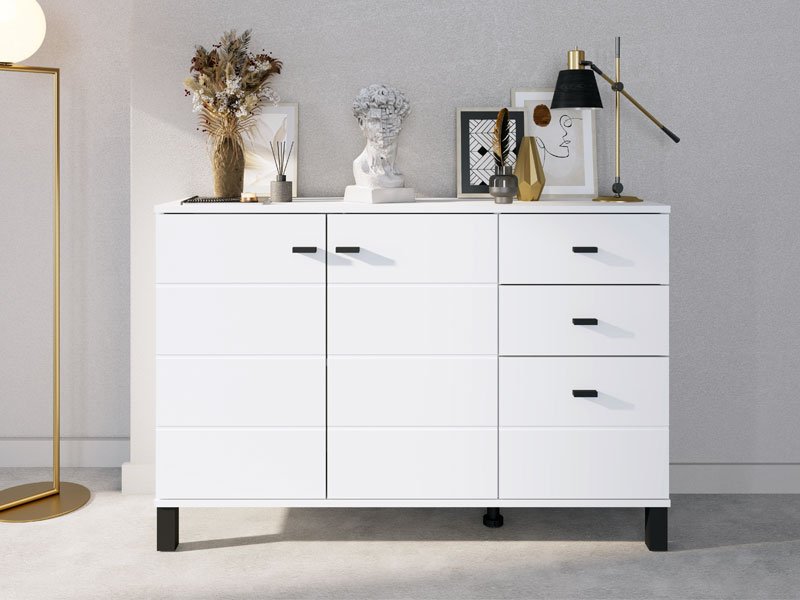 Комод ALMOND 77 6F, выполненный в матовом белом декоре, отличается минималистичным дизайном и высокой функциональностью. Полезное пространство состоит из шести практично расположенных выдвижных ящиков, которые обеспечивают удобное и наглядное хранение различных предметов. Благодаря компактным размерам и нейтральному цвету, комод ALMOND 77 6F является идеальным выбором для обустройства спальни, прихожей или гостиной зоны, легко вписываясь в современные интерьеры.