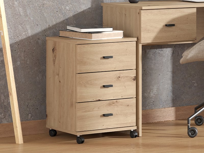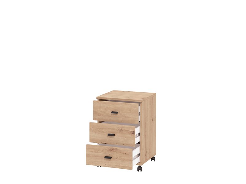 Тумба ALMOND 3F, выполненная в декоре ремесленного дуба, отличается простым и функциональным дизайном. Она состоит из трёх выдвижных ящиков, которые обеспечивают наглядное и практичное хранение вещей, а благодаря колёсикам легко перемещается по помещению. Тумба ALMOND 3F является практичным дополнением для рабочей или детской комнаты.