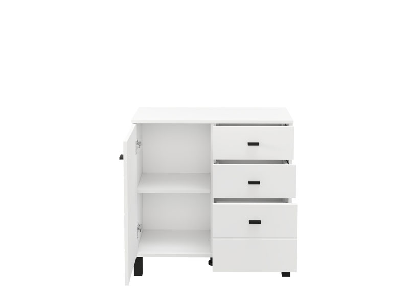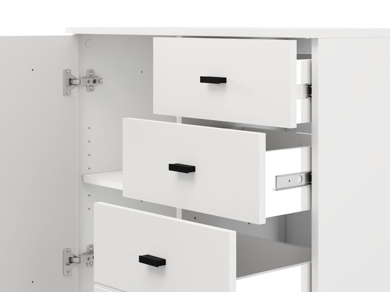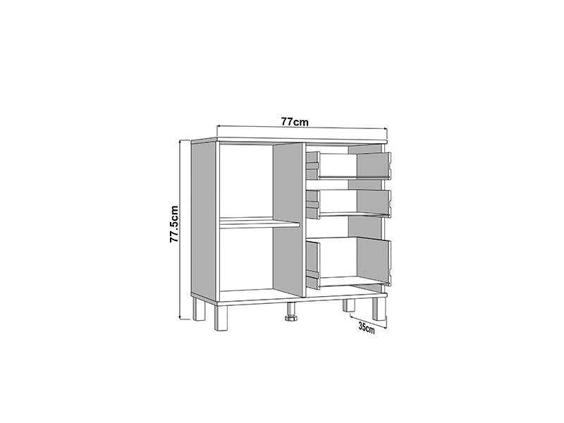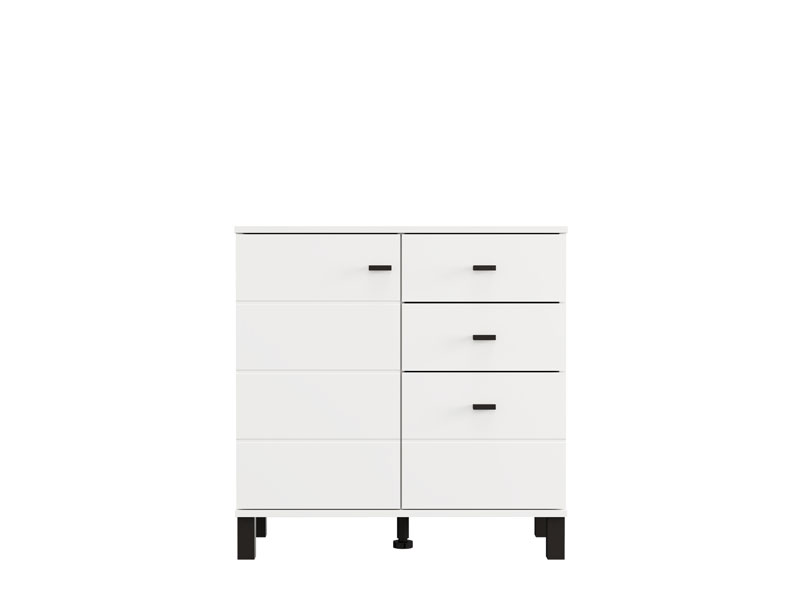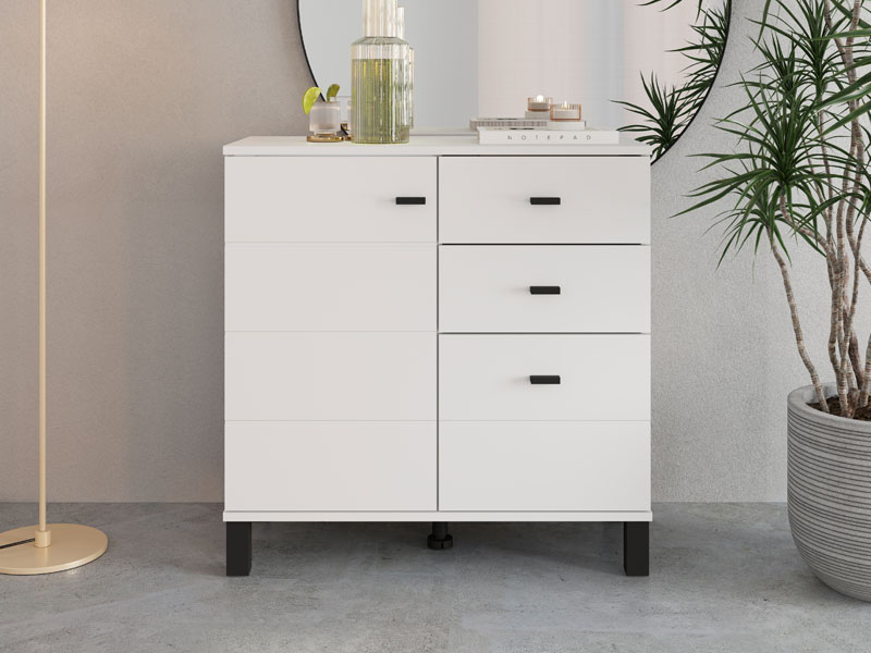 Комод ALMOND 77 2K3F1V, выполненный в матовом белом декоре, отличается компактными размерами и функциональным расположением элементов. Двухстворчатая форма обеспечивает наглядно организованное внутреннее пространство, включающее одну закрытую секцию с перегородками, а также три выдвижные ящика - два более мелких, предназначенных для мелочей, и один более глубокий для хранения более крупных предметов. Благодаря нейтральной эстетике и практичности, комод ALMOND 77 2K3F1V является подходящим выбором для прихожей, спальни или небольшой гостиной зоны.