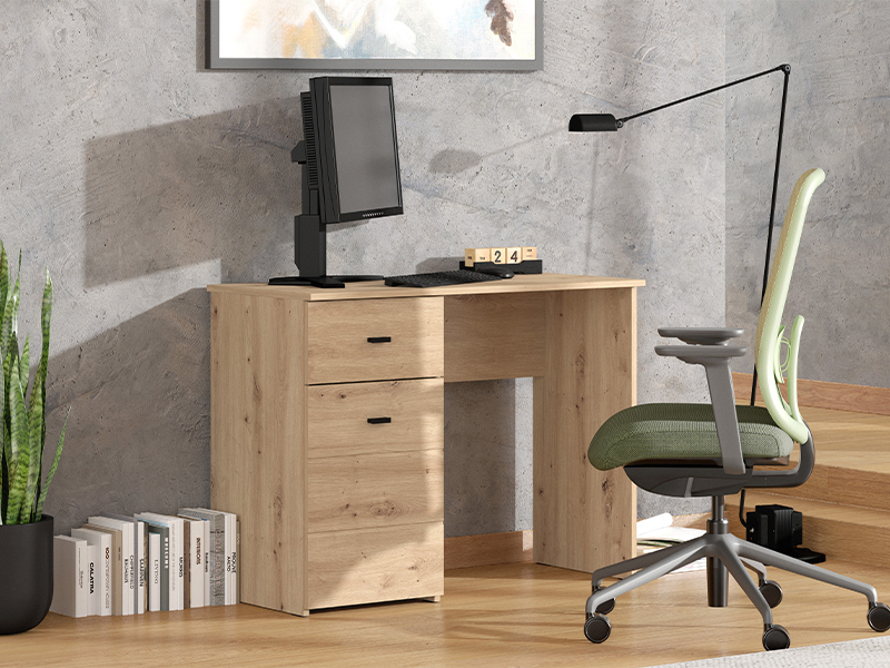 Компьютерный стол DIOFANT 1F1V, выполненный в декоре ремесленного дуба, отличается минималистичным и современным дизайном. Помимо рабочей поверхности, полезное пространство включает один небольшой выдвижной ящик и одну закрытую секцию с перегородками, обеспечивающие практичное хранение. Благодаря компактным размерам и естественной эстетике древесного декора, стол DIOFANT 1F1V является незаменимым элементом для функционального и наглядно организованного рабочего пространства.