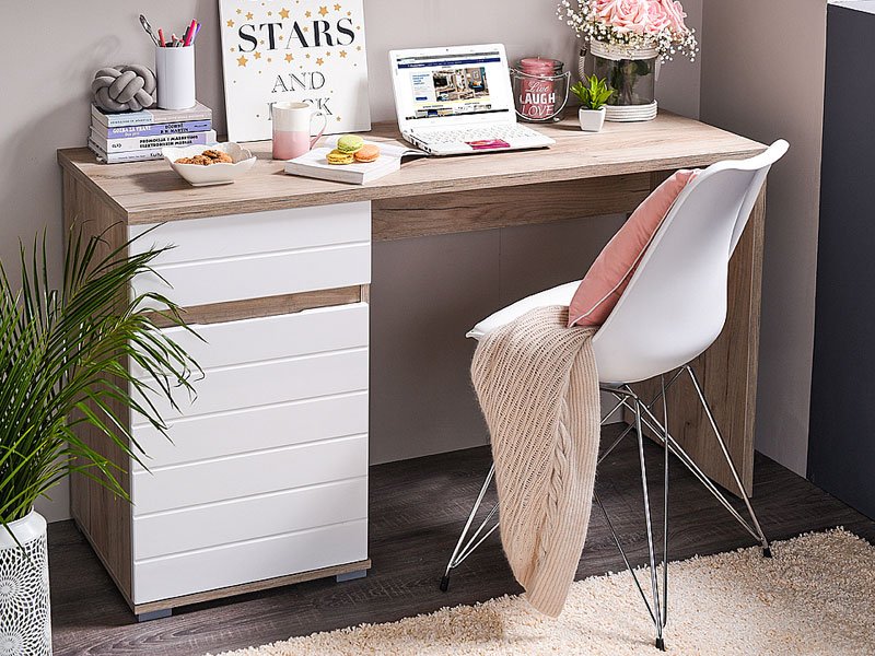 Компьютерный стол ELAN, украшенный под серый дуб в белой лакировке, своим дизайном и организацией используемого пространства представляет идеальный выбор для меблировки рабочего кабинета, в котором всё будет на своих местах. Закрытая форма решения дизайна и функциональный ящик оставляют достаточно пространства для укладки книг и самых различных вещей, необходимых для спокойной работы.