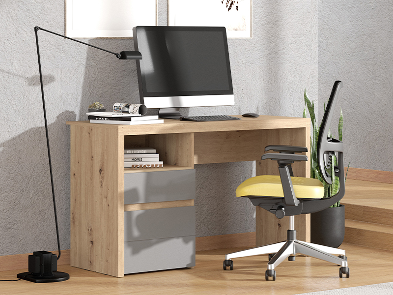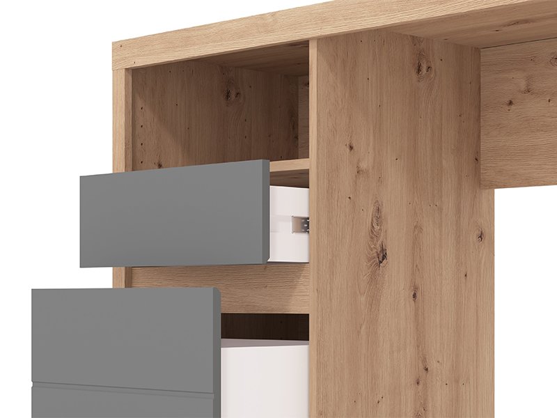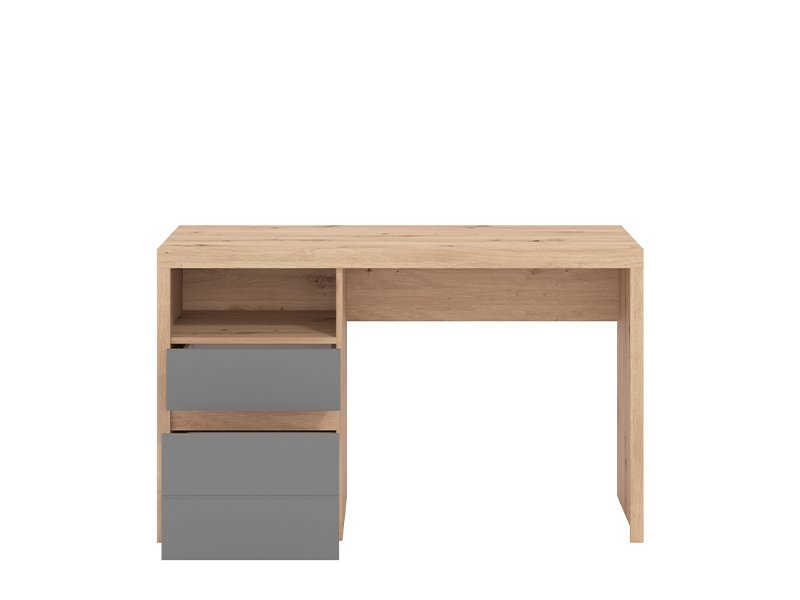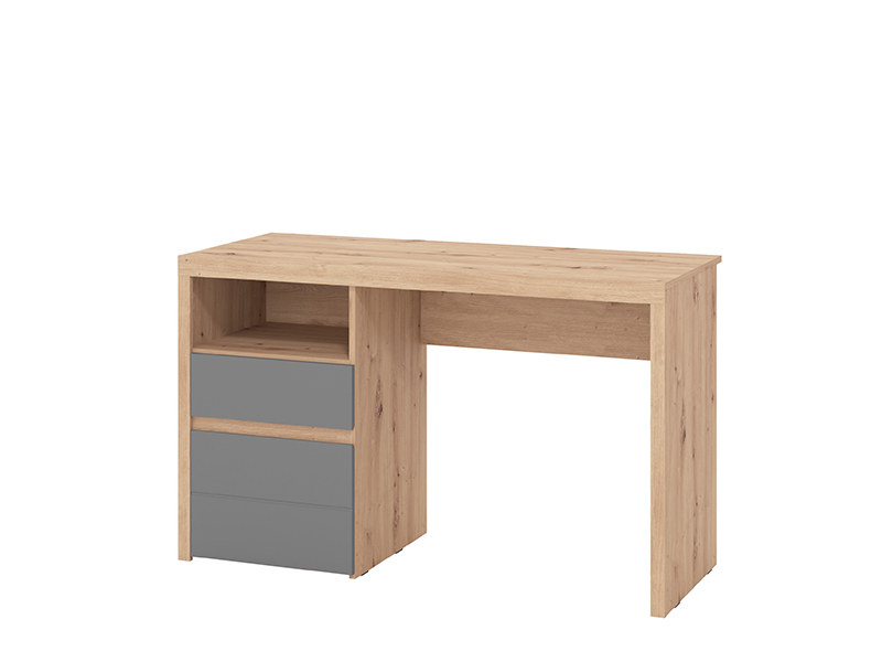 Компьютерный стол HIPATIA 2F, выполненный в комбинации декора ремесленного дуба, графитово-серого декора и фольги в декоре ремесленного дуба, отличается современным и элегантным дизайном без видимых ручек. Помимо рабочей поверхности, полезное пространство включает два выдвижных ящика - из которых один более глубокий, а также одну открытую полку, что обеспечивает наглядное и функциональное хранение. Благодаря компактным размерам и гармонично сочетающимся декорам, компьютерный стол HIPATIA 2F является незаменимым элементом для функциональной и наглядно организованного рабочего пространства.