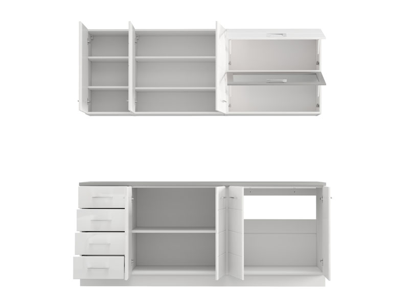 Кухня UNA 200, выполненная в комбинации матового белого декора и белой лак-фольги, представляет собой элегантное и функциональное решение для современных кухонных интерьеров. Практично расположенные элементы обеспечивают эффективную организацию и удобное хранение кухонных принадлежностей, а сдержанный дизайн, чистые линии и нейтральные тона способствуют созданию светлой и аккуратной атмосферы. Кухня поставляется без столешницы, мойки и цоколя, а общая глубина со столешницей составляет 60 см, что позволяет рационально планировать пространство и обеспечивает практичное использование в повседневной эксплуатации.