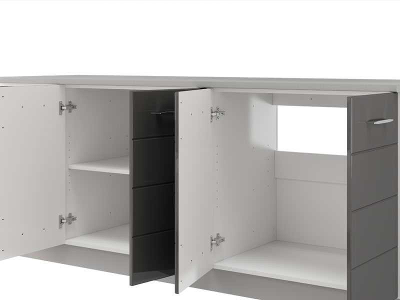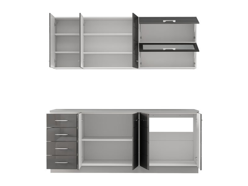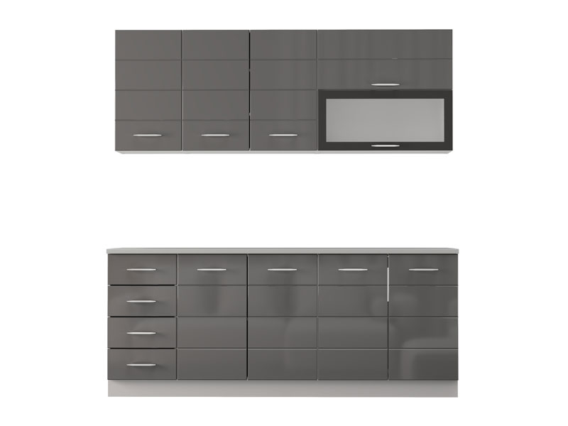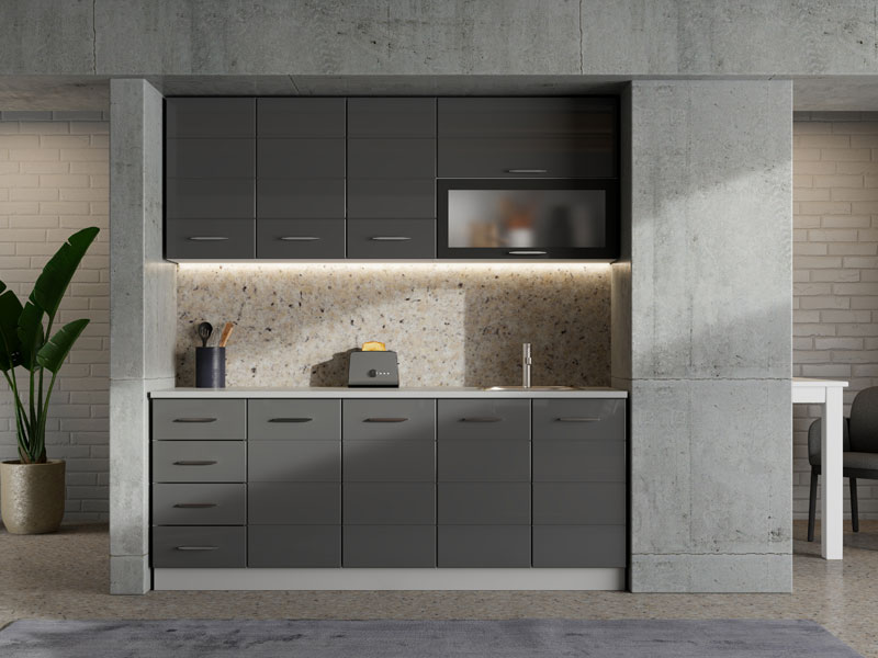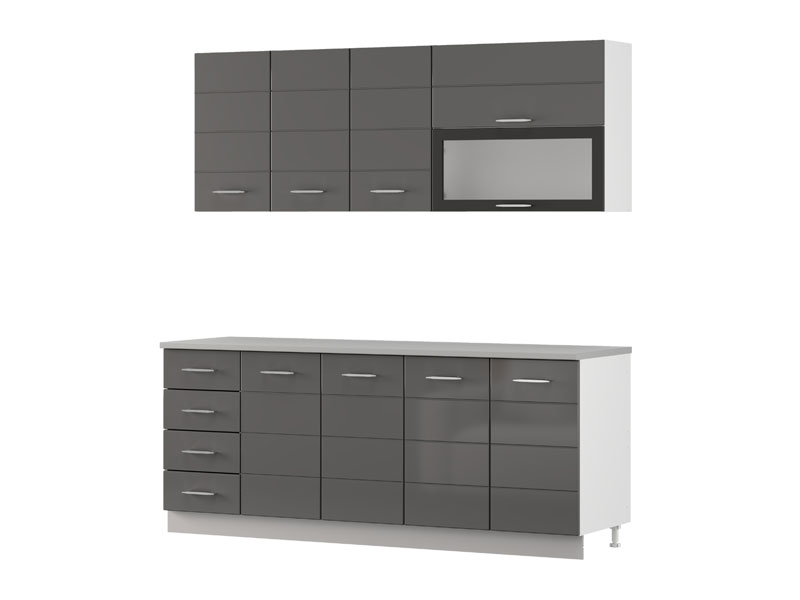 Кухня UNA 200, выполненная в комбинации матового белого декора и серой лак-фольги, представляет собой элегантное и функциональное решение для современных кухонных интерьеров. Практично расположенные элементы обеспечивают эффективную организацию и удобное хранение кухонных принадлежностей, а сдержанный дизайн, чистые линии и нейтральные тона способствуют созданию светлой и аккуратной атмосферы. Кухня поставляется без столешницы, мойки и цоколя, а общая глубина со столешницей составляет 60 см, что позволяет рационально планировать пространство и обеспечивает практичное использование в повседневной эксплуатации.