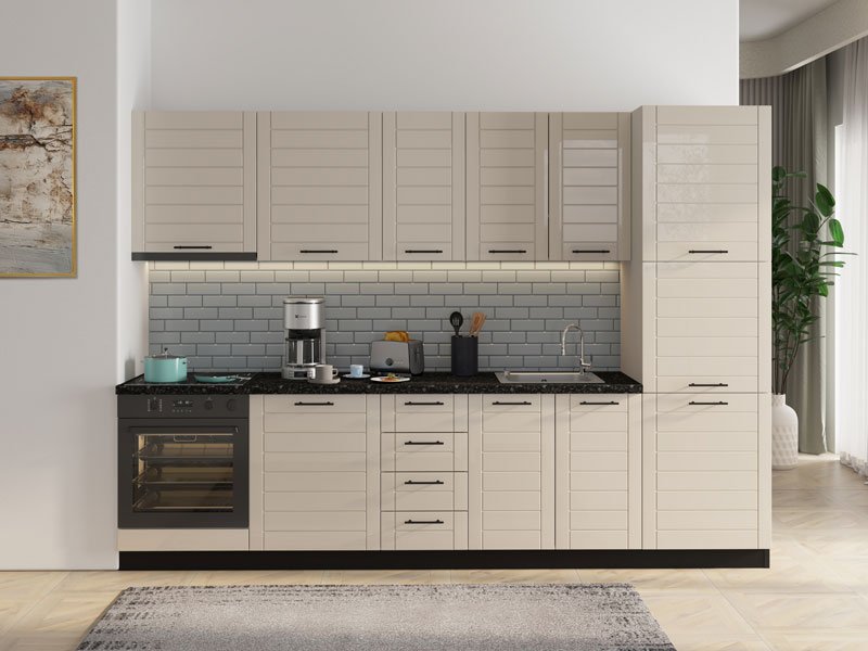 Кухонный элемент DRINA V60UA, выполненный в комбинации матового белого декора и песочной лак-фольги, предназначен для встраивания вытяжки и представляет собой практичное решение для оптимального использования кухонного пространства. Уникальный современный дизайн, чистые линии и нейтральные тона отвечают эстетическим требованиям при оформлении современных и элегантных кухонных интерьеров. Данный элемент образует гармоничное целое с кухней DRINA 180, дополняя функциональность и минималистичный внешний вид всего пространства.