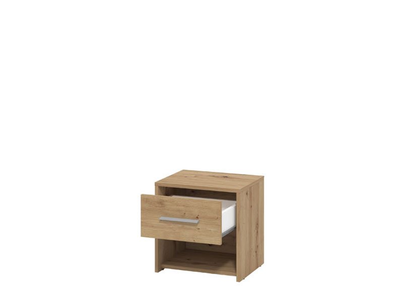 Прикроватная тумба GARONA 2NO1F в декоре ремесленного дуба придает функциональность и элегантность всей обстановке. Отлично распределенное полезное пространство прикроватной тумбы состоит из одного практичного выдвижного ящика и открытой полки.