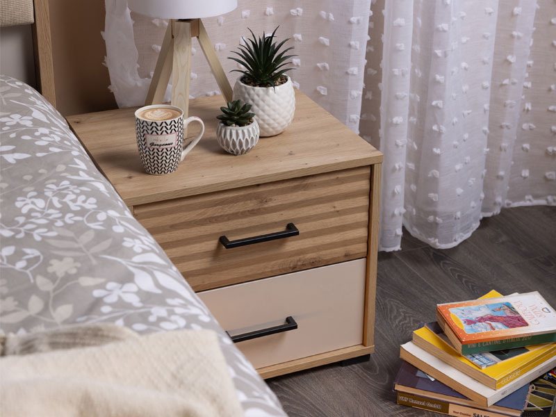 Полезное пространство прикроватной тумбы состоит из двух практичных ящиков.