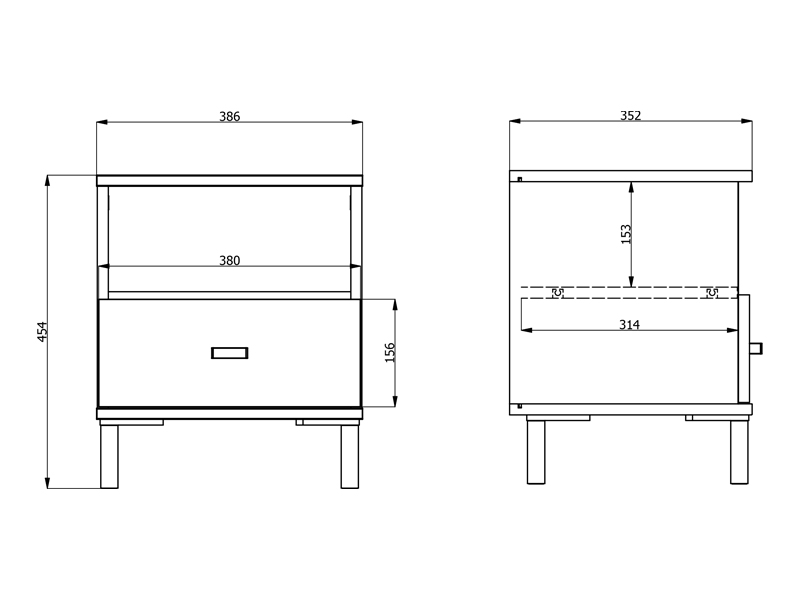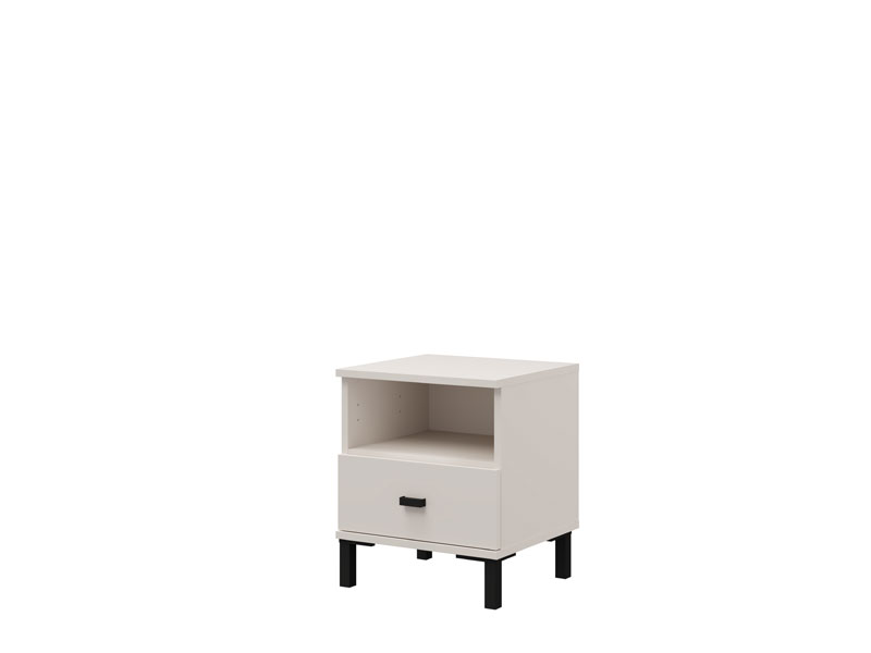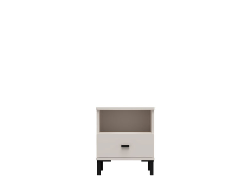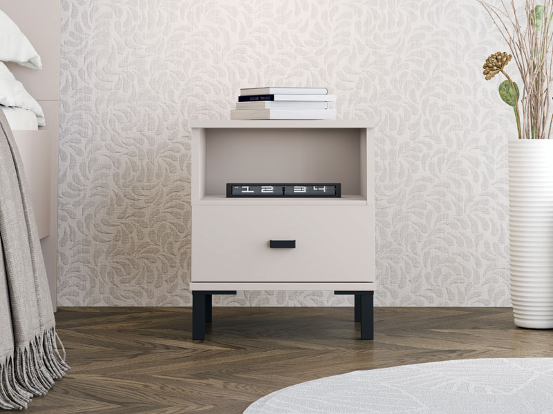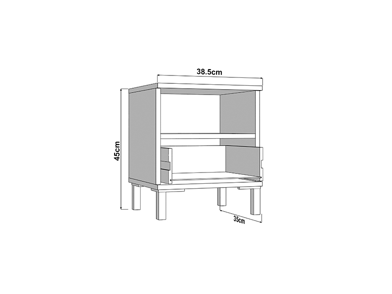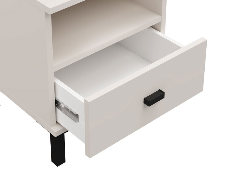 Полезное пространство тумбы включает один вместительный ящик и одну открытую полку, что позволяет удобно размещать мелкие предметы и повседневные принадлежности.