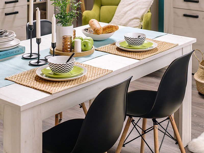 Обеденный стол ОСКАР ТС 160x90 легко сочетается с остальными элементами интерьера столовой. В этой модели предусмотрена возможность расширения рабочей поверхности до размеров 200,5x90,5см.