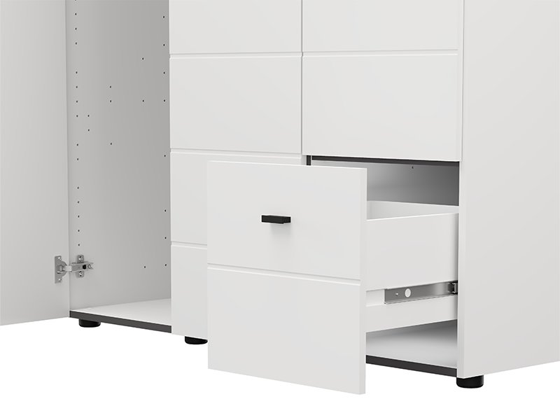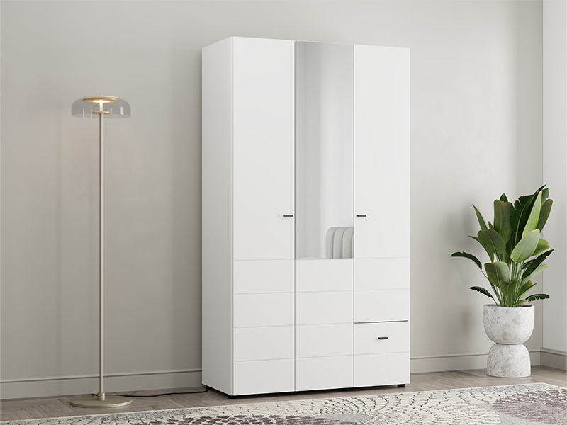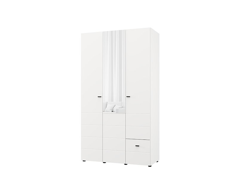 Шкаф NEVIS 3K1F1O h207, выполненный в матовом белом декоре, представляет собой функциональное и современное решение для хранения одежды. Полезное пространство включает двустворчатую часть с гардеробной штангой, один перегородочный сегмент и один глубокий ящик, что обеспечивает практичную и наглядную организацию одежды и аксессуаров. Существует возможность добавления комплекта полок для ещё лучшей организации внутреннего пространства. Зеркало дополнительно повышает функциональность и визуально улучшает пространство. Шкаф NEVIS 3K1F1O h207 относится к коллекции NEVIS и может комбинироваться с другими моделями из той же линии.