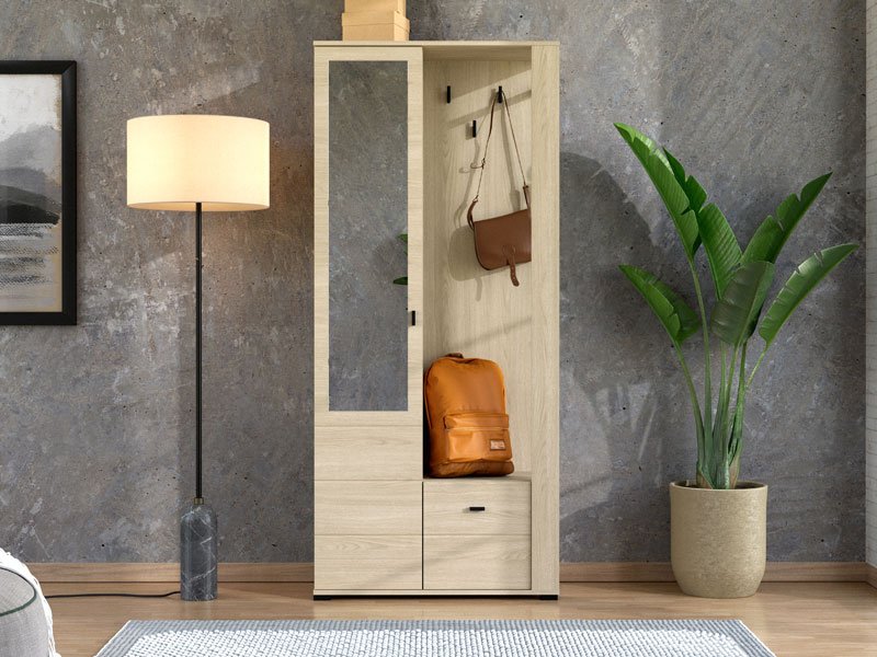 Прихожая DRAKE, выполненная в декоре светлого портового дуба, привносит тепло и природное очарование в первое впечатление от вашего дома. Благодаря компактному дизайну данная модель предлагает гармонично организованное полезное пространство для хранения сезонной одежды и обуви, обеспечивая функциональную и аккуратную организацию пространства. Практичная конструкция создаёт приятную и современную входную зону, которая излучает естественное тепло и современный стиль.
