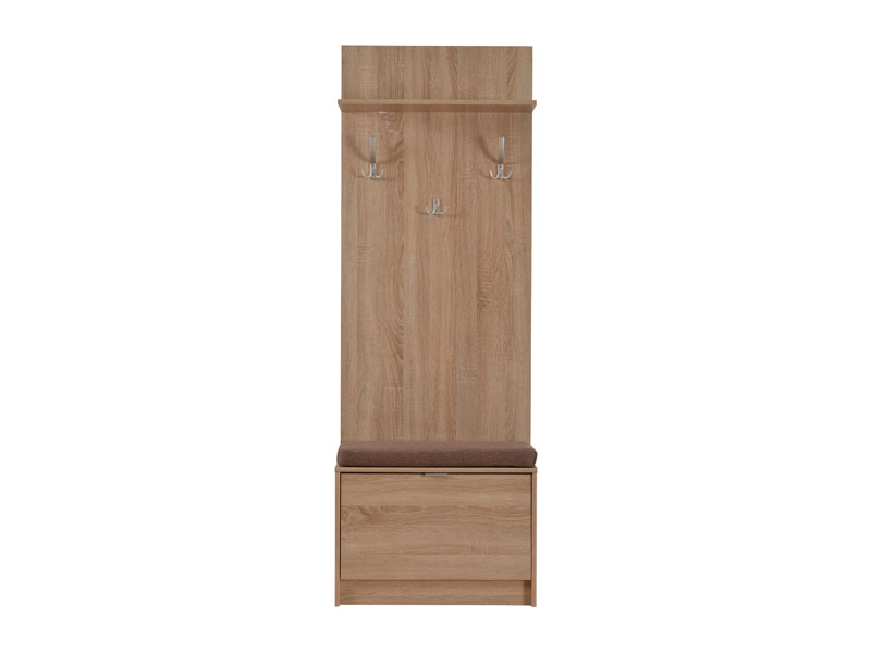 Модель прихожей FLAMENCO позволит полностью оснастить интерьер коридора. Она имеет три крючка, а также двойную закрытую полку для хранения обуви. Если размеры помещения позволяют и есть необходимость, то модель прихожей FLAMENCO можно комбинировать со шкафчиками для обуви различных размеров.