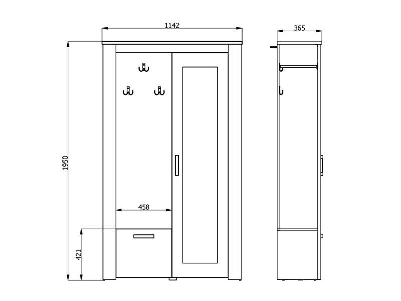 Прихожая KENT PS, украшенная под белые и серые оттенки цвета дуба, является частью одноимённой коллекции, приносящей в ваш дом чувство элегантной классики и утончённого вкуса. Эта модель оснащена полками, небольшой частью для размещения сезонной обуви, вешалками и зеркалом, придающим каждой прихожей ноту обширности и безмятежности.