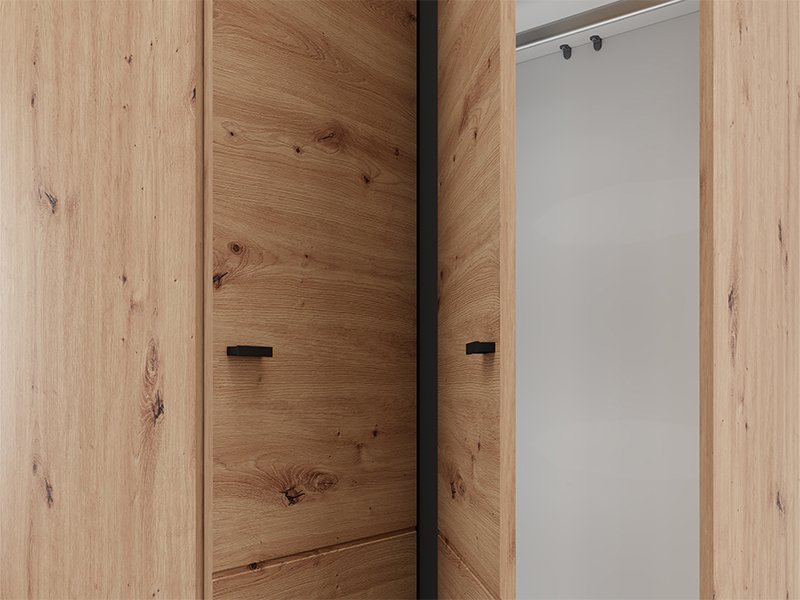 Шкаф NEVIS UG h207, выполненный в декоре ремесленного дуба, представляет собой функциональное и современное решение для полного использования пространства. Угловой дизайн обеспечивает оптимальную организацию одежды и аксессуаров: одна сторона шкафа оснащена гардеробной штангой, тогда как другая включает перегородки, обеспечивая практичное и наглядное полезное пространство. Шкаф NEVIS UG h207 относится к коллекции NEVIS и может комбинироваться с другими моделями из той же линии.