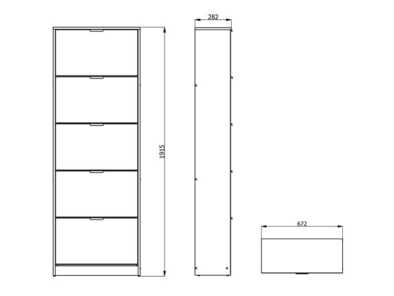 Шкаф для обуви HUGO 25 OG в сочетании зеркала с корпусом в декоре под цвет серого дуба имеет пять сегментов для откладывания сезонной обуви, а благодаря своим размерам и двухуровневой планировки представляет собой очень эффективное функциональное решение дизайна прихожей более скромных размеров.
