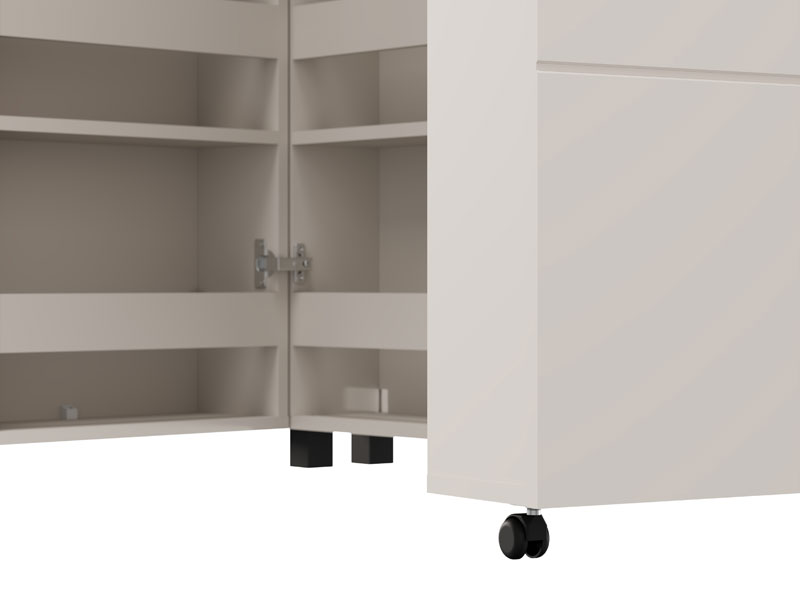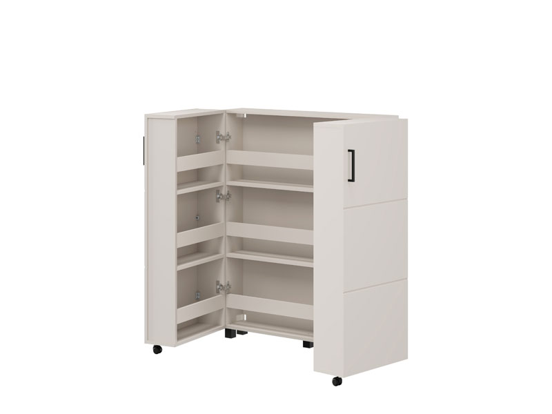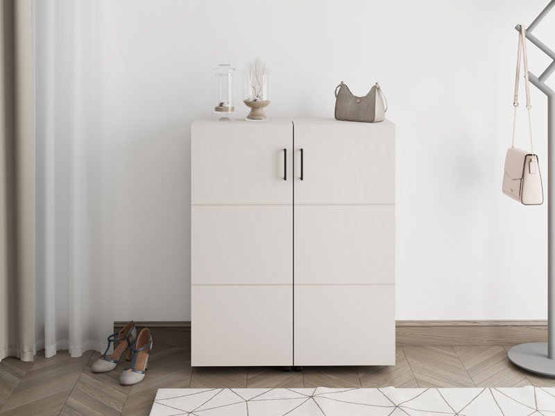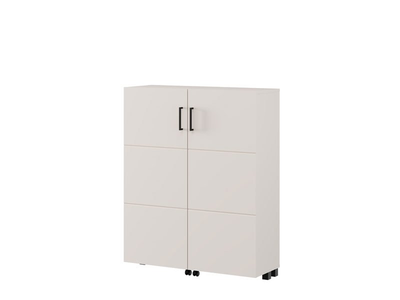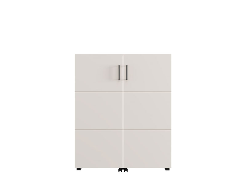 Шкафчик для обуви ISLAY 91 2K h113 в декоре кашемира с полосами горячего тиснения представляет собой практичное и элегантное решение для прихожей. Внутреннее пространство этого двустворчатого шкафчика для обуви, выполненное по типу комода с закрытыми полками, обеспечивает наглядную и функциональную организацию обуви.