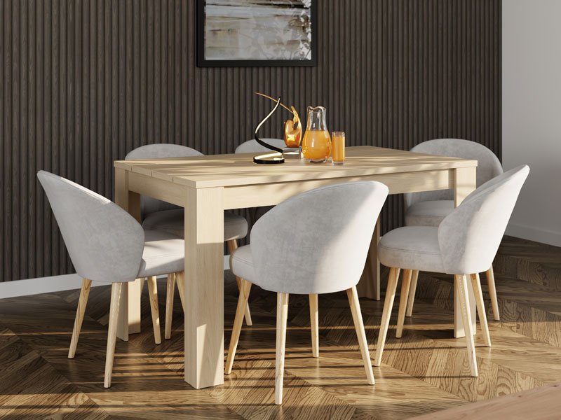 Обеденный стол SPOLETO 135×80, выполненный в декоре светлого портового дуба, является отличным выбором для современных столовых. Чёткие линии и минималистичный дизайн делают этот обеденный стол современным и функциональным, а размеры 135×80 см обеспечивают комфортное использование во время приёма пищи. Благодаря своему дизайну и сдержанному, тёплому декору светлого портового дуба, стол придаёт приятный и современный облик вашей столовой, легко сочетаясь с различными стилями стульев.