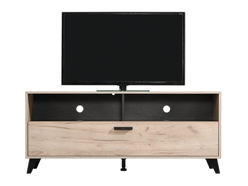 ТВ тумба UMBRIA TV 140 в сочетании декорации из серого дуба с чёрным деревом является частью одноименной коллекции, которая обеспечит, чтобы ваш дом был оборудован в соответствии с новейшими стандартами устройства интерьера. ТВ тумба UMBRIA TV 140 имеет в своём составе закрытый и открытый сегменты с перегородками.