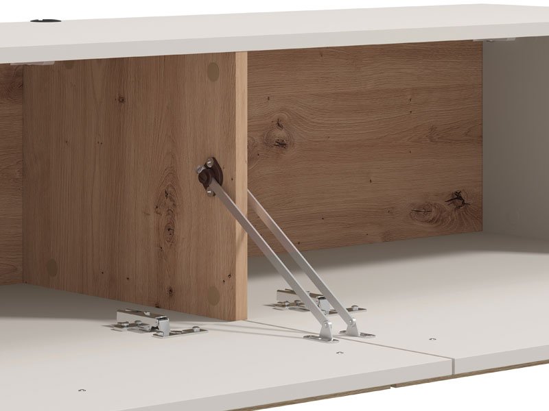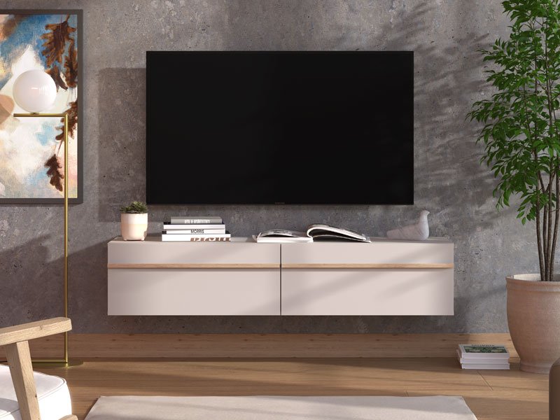 Полка под телевизор ARLES TV 154 2K2V в сочетании кашемирового декора и фольги из ремесленного дуба предназначена для меблировки гостиной и отличается современным дизайном, а также ярко выраженной эстетической нотой. Это функциональный предмет мебели, который идеально впишется в обстановку современного дома. Полезное пространство состоит из двух закрытых перегородок. Полка под телевизор ARLES TV 154 2K2V — модель консольной полки под телевизор, которая является одним из самых распространенных направлений в дизайне панельной мебели. Данная модель полки под телевизор имеет возможность добавления освещения.
