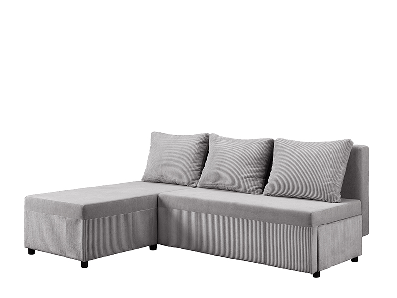 Точное наименование узора: сиденье/спинка - ткань SORO 90 серый / ткань LINCOLN 86 светло-серый, универсальный угол. Угловой диван - кровать LUELLA сочетает современный дизайн и практичность, идеально подходя для небольших гостиных. Благодаря практичному механизму опускания спинки он легко трансформируется в диван со спальной поверхностью размером 115×200 цм. Изготовлен из пенополиуретана, обеспечивая хороший уровень комфорта в повседневном использовании. Гарнитур оснащён одним ящиком для хранения, удобным для хранения постельного белья и других вещей.